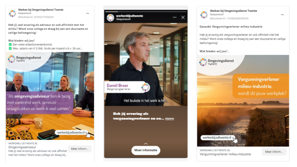 Zo gebeurt dit met 8 gerichte vacature-campagnes en de algemene ‘werken bij de Omgevingsdienst’ campagne.