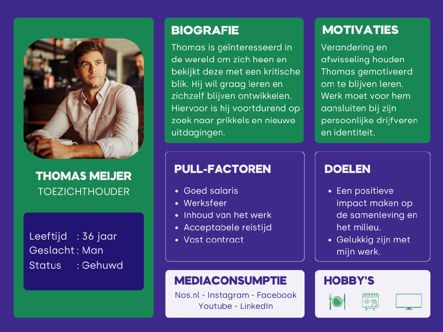 Een van de adviezen in het Appliscan rapport was om persona’s op te stellen. Persona’s zijn een soort ‘profielen’ van jouw ideale sollicitant. Zo is dit niet iemand met een bepaalde leeftijd en opleiding, maar meer een ‘echt’ persoon met een foto en een naam. Door je potentiële kandidaten een gezicht te geven, kan je je goed in deze personen verplaatsen.