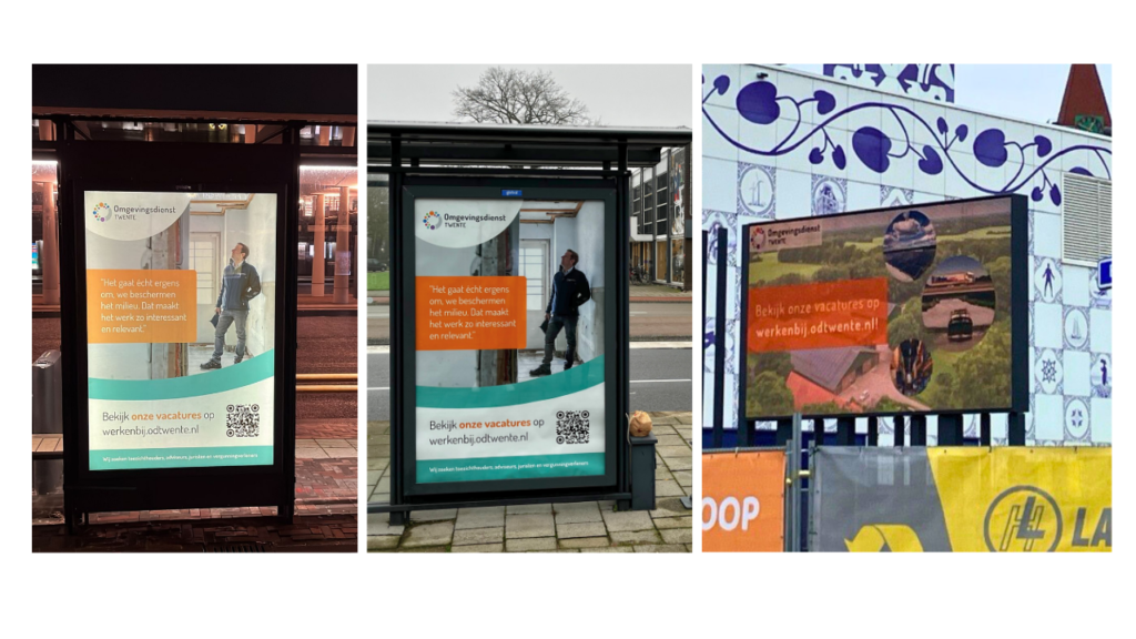 Zo heb je de Omgevingsdienst niet alleen op LinkedIn gezien, maar ook op een Cityscherm in Enschede of misschien zelfs op het toilet in Kinepolis.