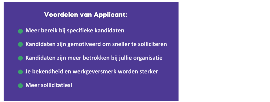 Stuur een bericht voor een vrijblijvend gesprek of kijk rond hier op applicant.nl voor meer informatie.